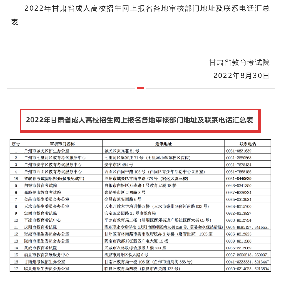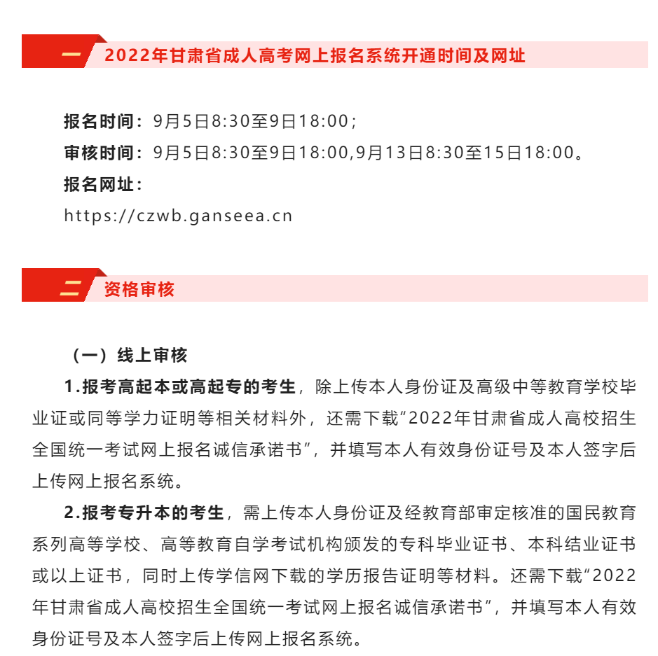 2022年甘肃省成人高考报名公告