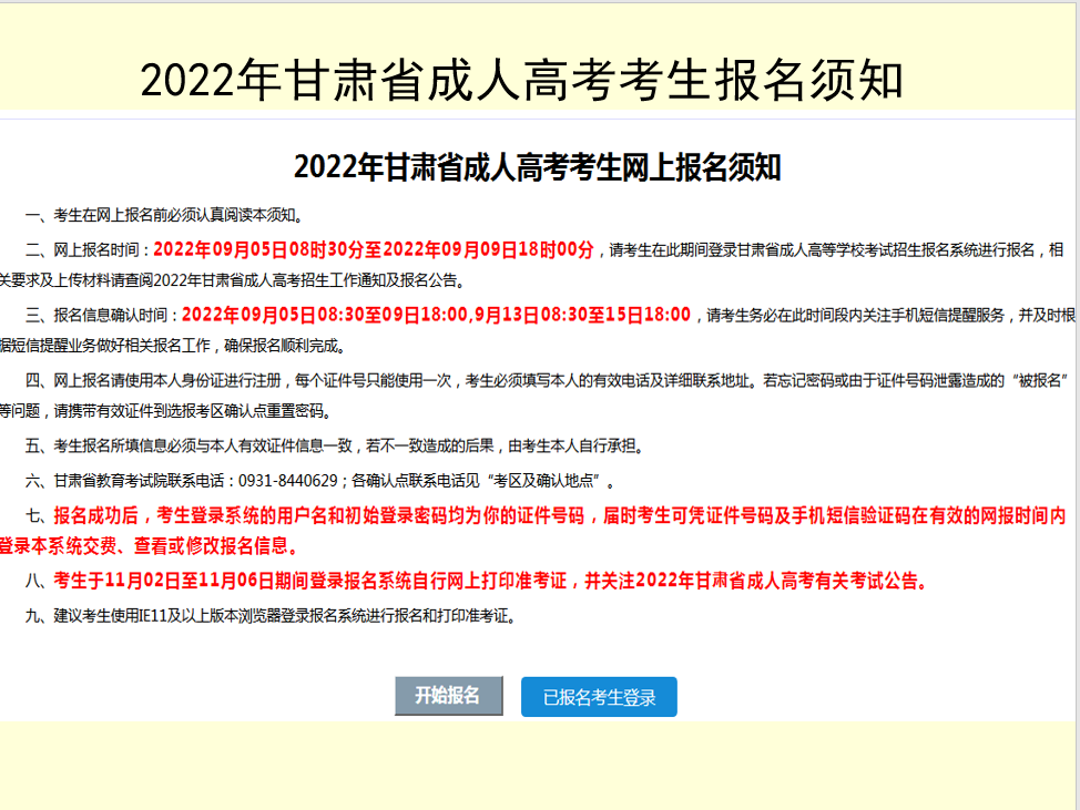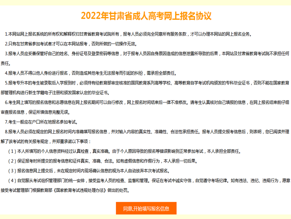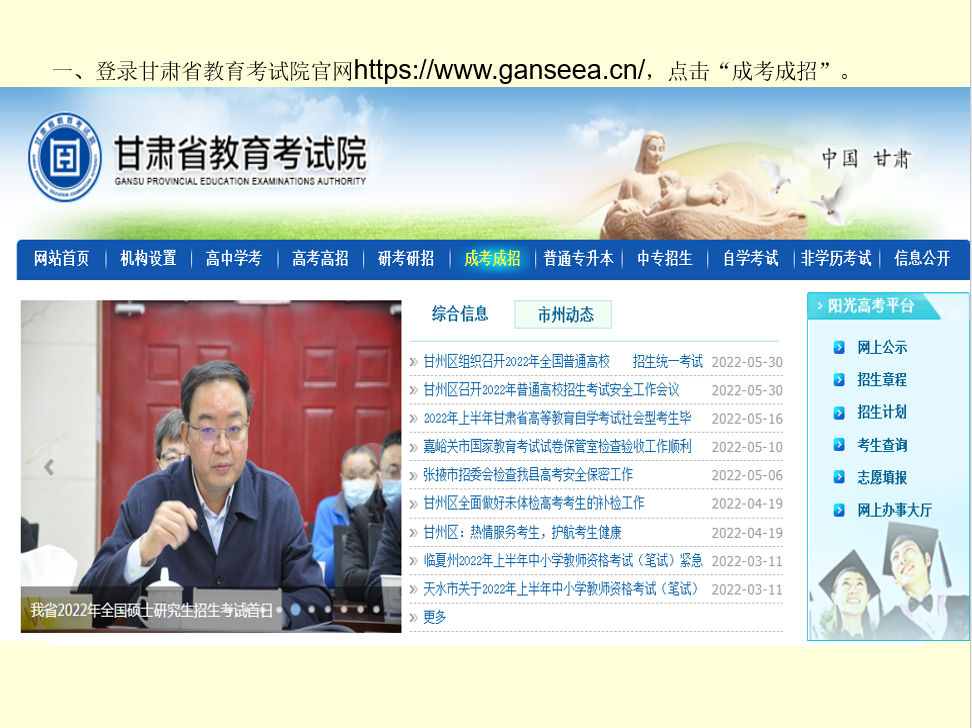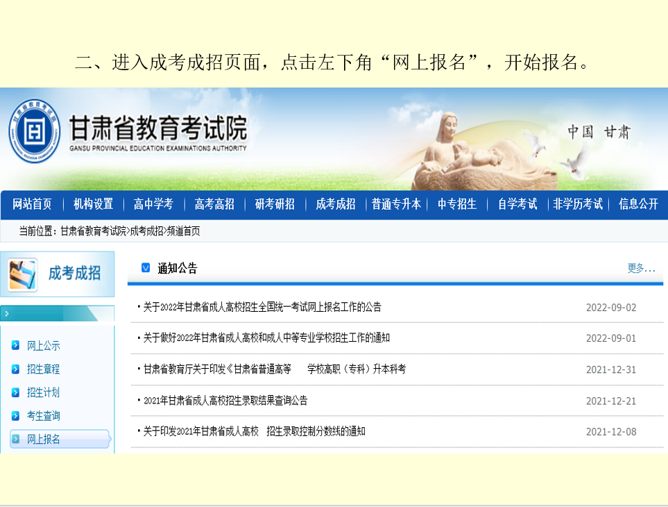 2022年甘肃省成人高考网上报名流程