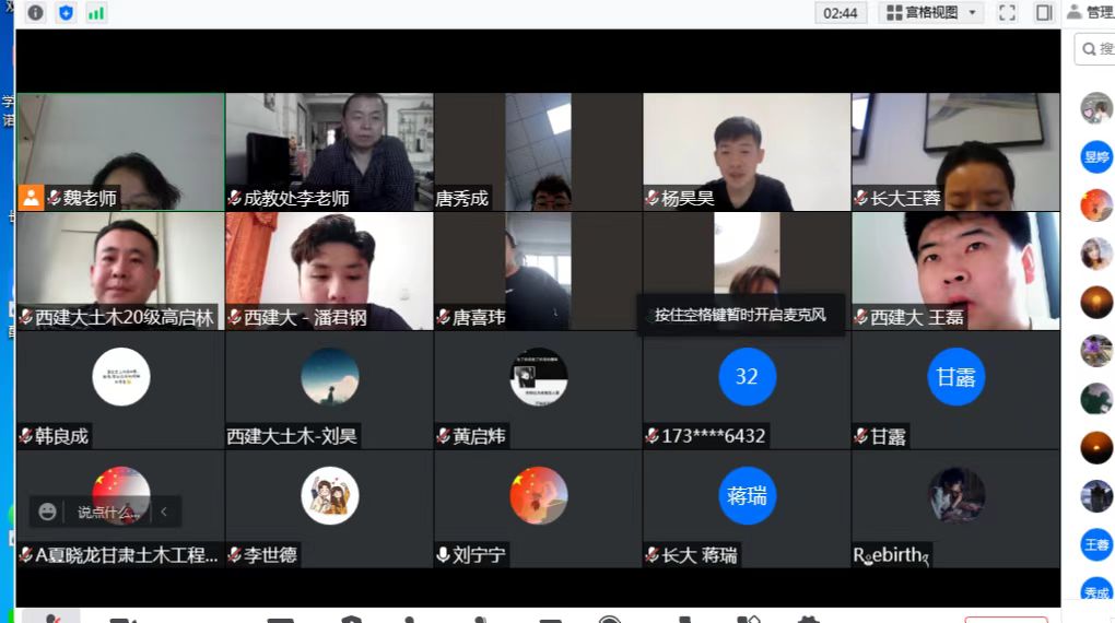 成教处举行了2022届毕业生线上答辩会因受疫情的影响,成教处于4月25日-29日组织2020届函授专升本毕业生通过线上答辩方式进行了毕业答辩。此次答辩长安大学、西安筑科技大学共计156人次,涉及七个专业。此次答辩是成教处第一次采用网络平台线上的方式进行,各位答辩老师和同学们都能按时进入会场,规范有序地进行答辩环节。最终在全体老师和同学们的共同努力下,本次答辩取得了较好的效果,为成教处今后利用网络平台进行远程教学工作起到了良好的开端!