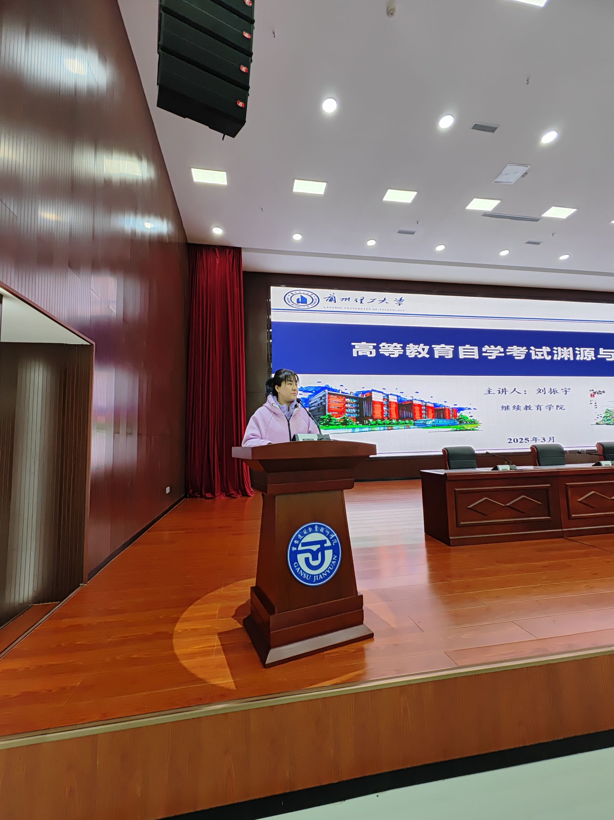 为了适应地方经济社会发展对高素质应用型人才的需求,学校成教处与兰州理工大学合作,特为我校学生提供了多渠道的学历提升机会,3月13日兰州理工大学继续教育学院刘振宇副院长、毛晓辉主任一行来到我校为建筑经济管理学院的师生进行自学考试相关政策的介绍和讲解。