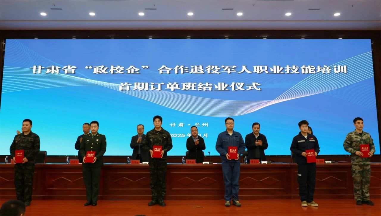 10月13日,甘肃省“政校企”合作退役军人职业技能培训首期订单班结业典礼在我校举行。我校党委副书记、校长党星海,党委委员、副校长锁冠侠,甘肃省退役军人事务厅就创处处长陈降明,中核五公司甘肃项目部党委副书记、项目行政经理季明力及相关负责人,参训学员参加了结业仪式。省退役军人事务厅就业创业处一级调研员温玉林主持仪式。