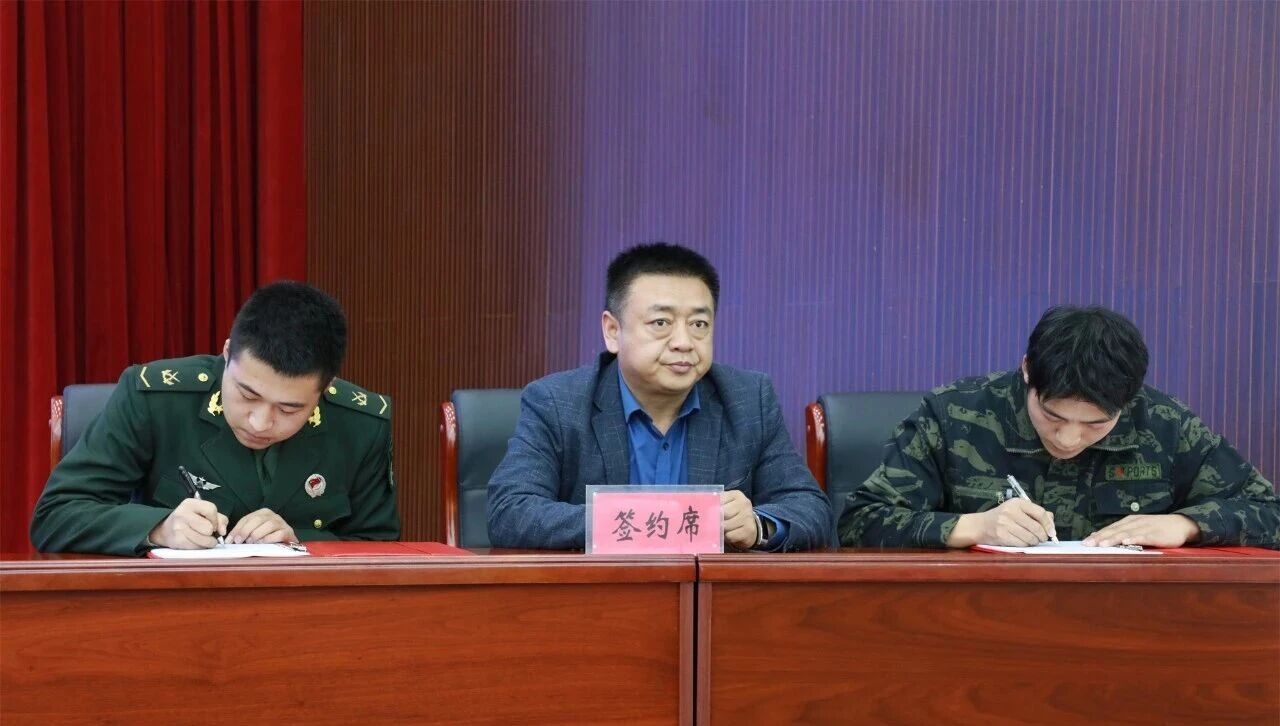 随后,中核五公司技术支持单位——甘肃千江建设工程有限公司总经理郭海伟与优秀学员代表签订中核五公司技术支持用工协议。三方共同签订“政校企”合作退役军人就业培训框架协议。优秀学员刘建伟代表全体学员发言。